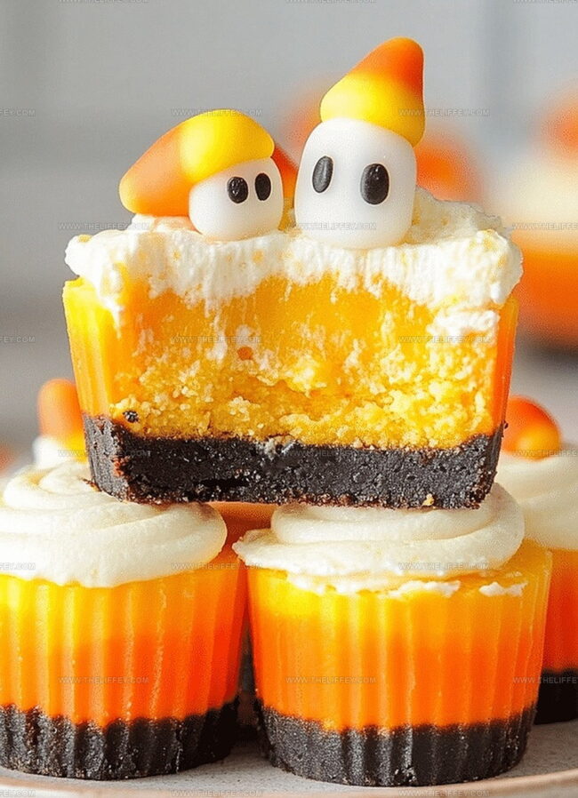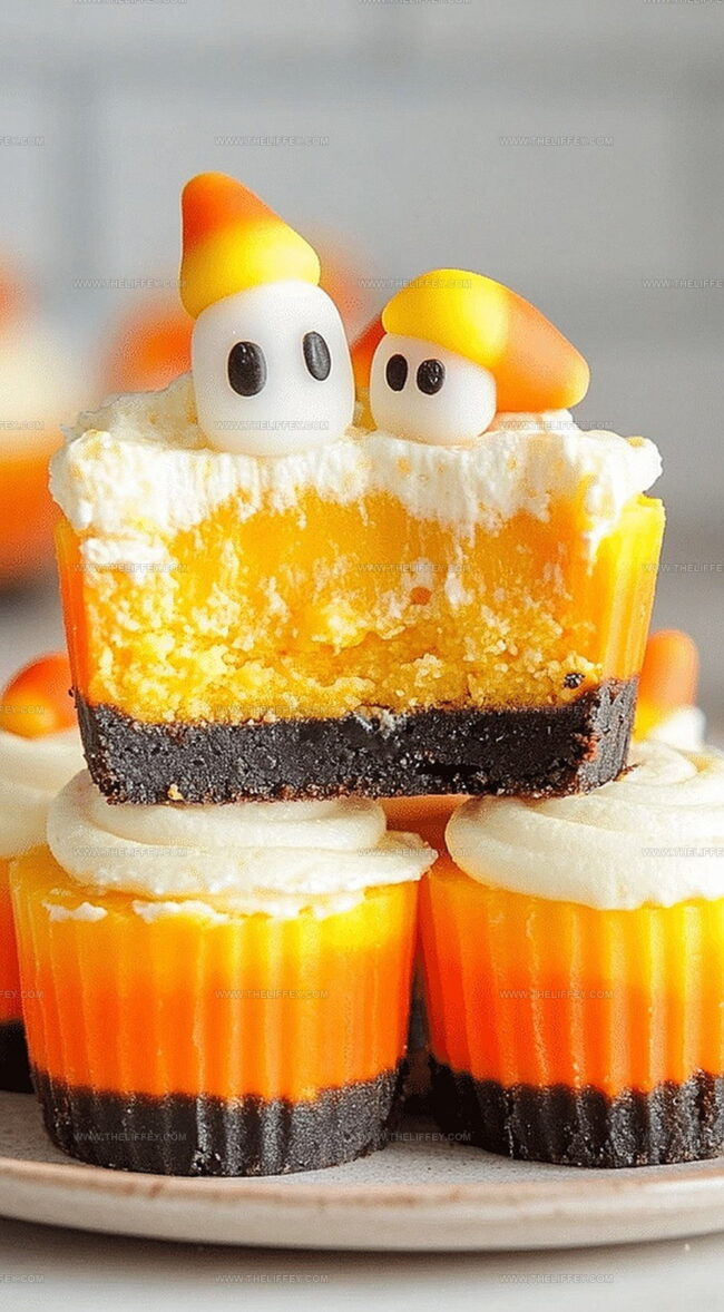 Sweet mini candy corn cheesecakes bring festive Halloween dessert magic to your table. Layered orange and white creamy treats delight guests with seasonal charm and irresistible flavor.