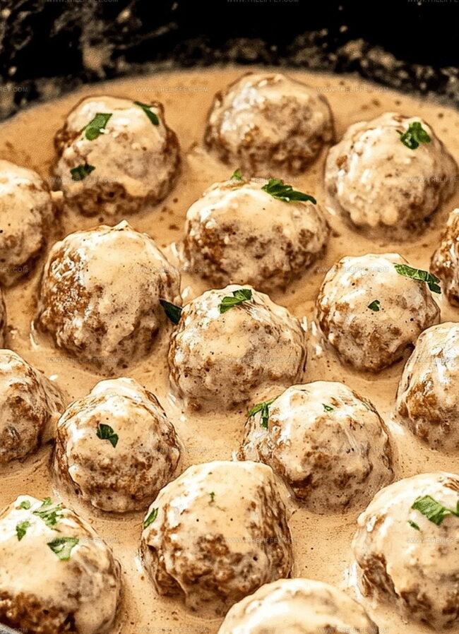 Sprinkle freshly chopped parsley over the meatballs. Serve piping hot alongside mashed potatoes, egg noodles, or fluffy rice for a comforting, satisfying meal.