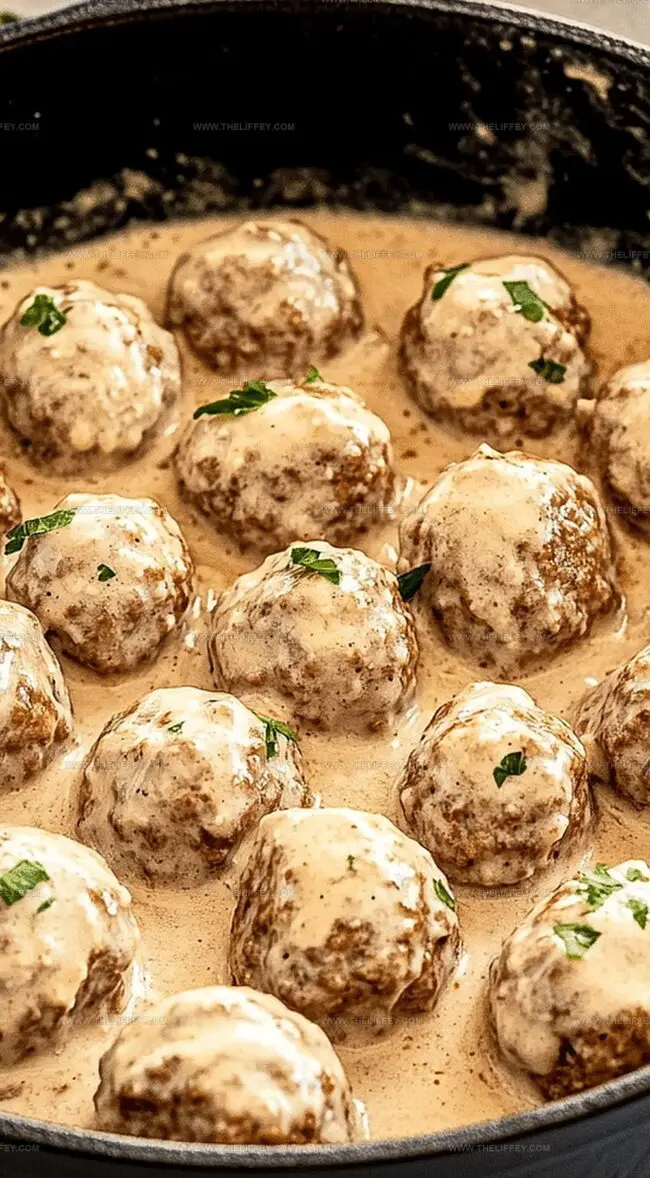Return meatballs to the skillet, nestling them into the creamy sauce. Simmer for approximately 10 minutes, ensuring meatballs are thoroughly cooked and absorbing the rich, flavorful sauce.