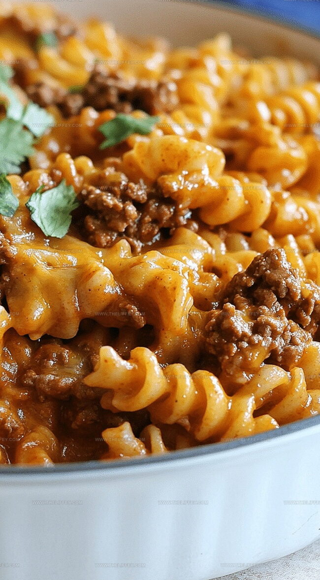 Mexican-inspired enchilada pasta blends comfort food classics for a hearty family dinner. Spicy ground beef, melted cheese, and zesty sauce create a memorable meal that satisfies hungry crowds.