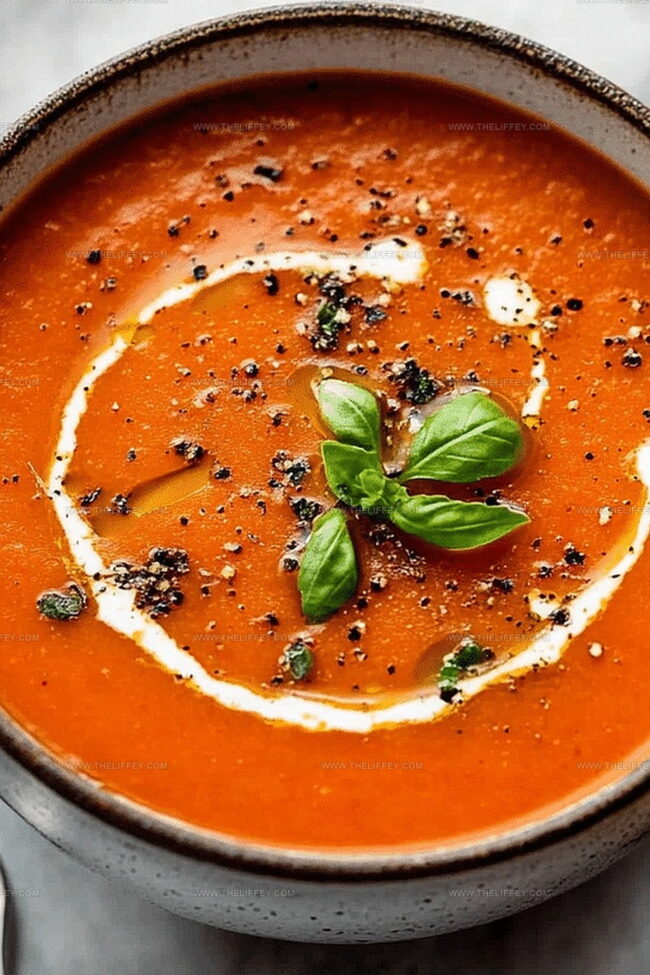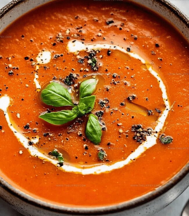 - Serve the soup in individual bowls, adorning with fresh basil leaves. Customize with optional garnishes like Parmesan cheese, crisp croutons, a delicate olive oil drizzle, balsamic glaze, or a dollop of tangy sour cream.