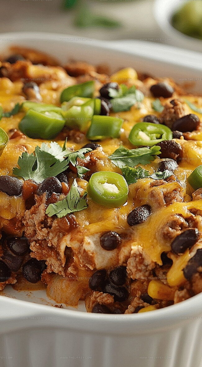 Mexican-inspired black bean and beef enchilada casserole delivers hearty comfort with layers of rich flavors and spicy goodness. Melted cheese and tender meat create a satisfying meal you’ll crave again and again.