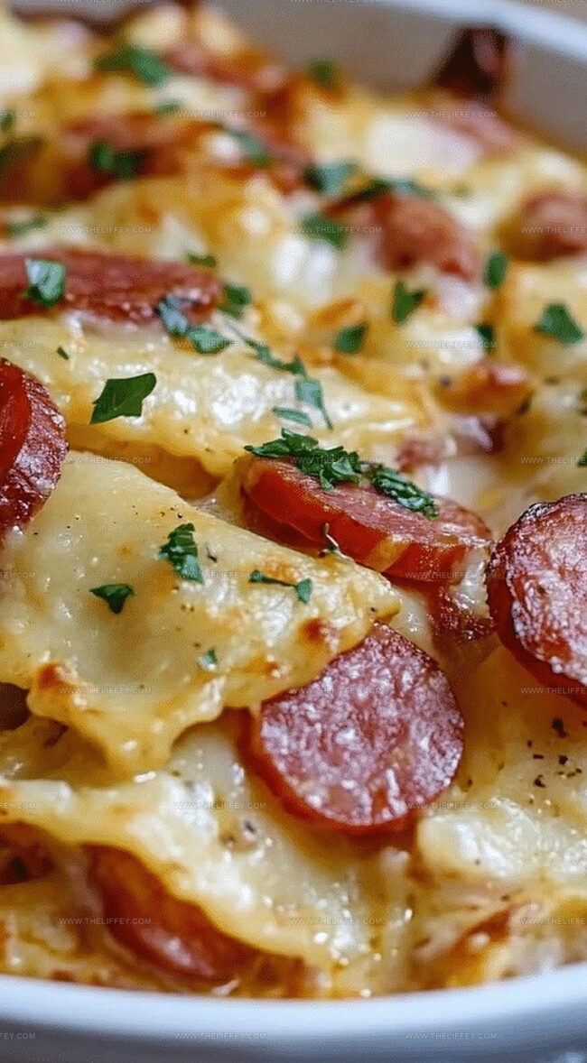 Crispy edges, melted cheese, and savory kielbasa create an irresistible combination you won’t be able to resist.