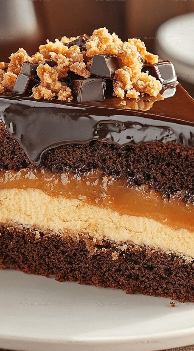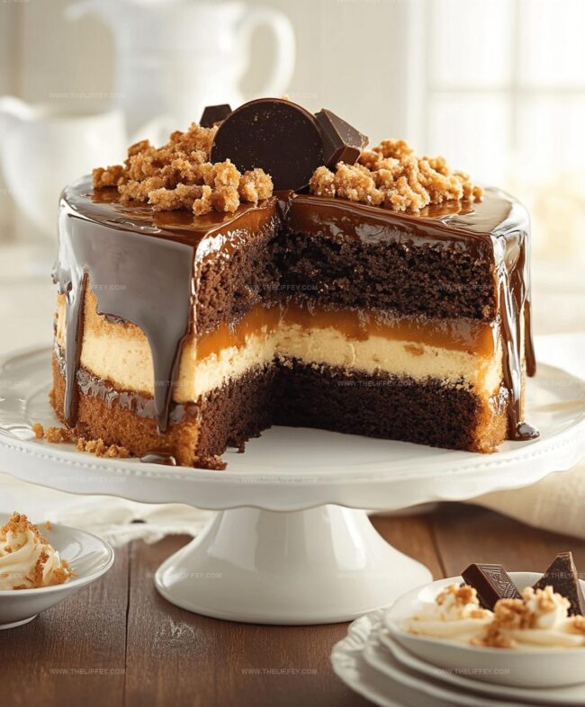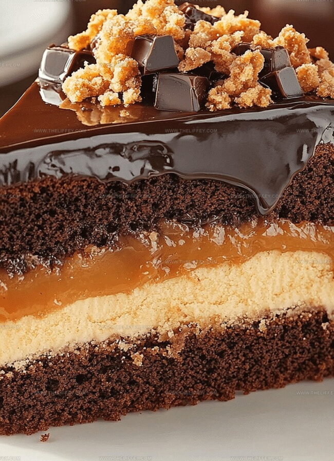 Indulgent chocolate caramel toffee crunch cake delivers rich layers of decadent flavor from classic American dessert traditions. Chocolate lovers will savor each complex bite while experiencing sweet caramel and crisp toffee textures that complement deep cocoa notes.