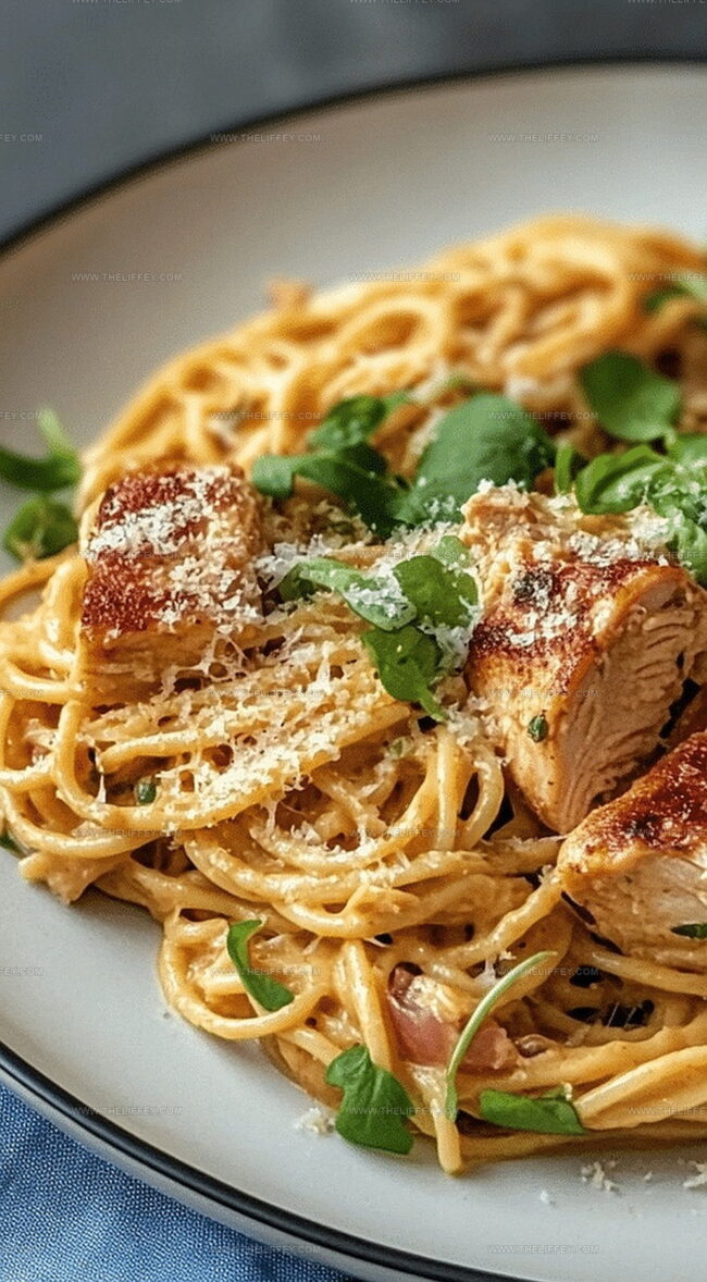 Delightful chicken carbonara emerges as a creamy Italian classic that elevates pasta perfection. Rich pecorino and crisp pancetta create a luxurious sauce promising pure comfort on your plate.