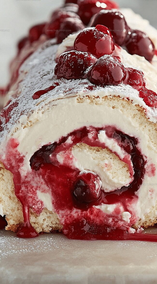 Cherry bliss cheesecake cake roll combines creamy filling with light sponge cake in a stunning dessert. Sweet layers and rich cream showcase classic American baking elegance you’ll savor with each delightful bite.