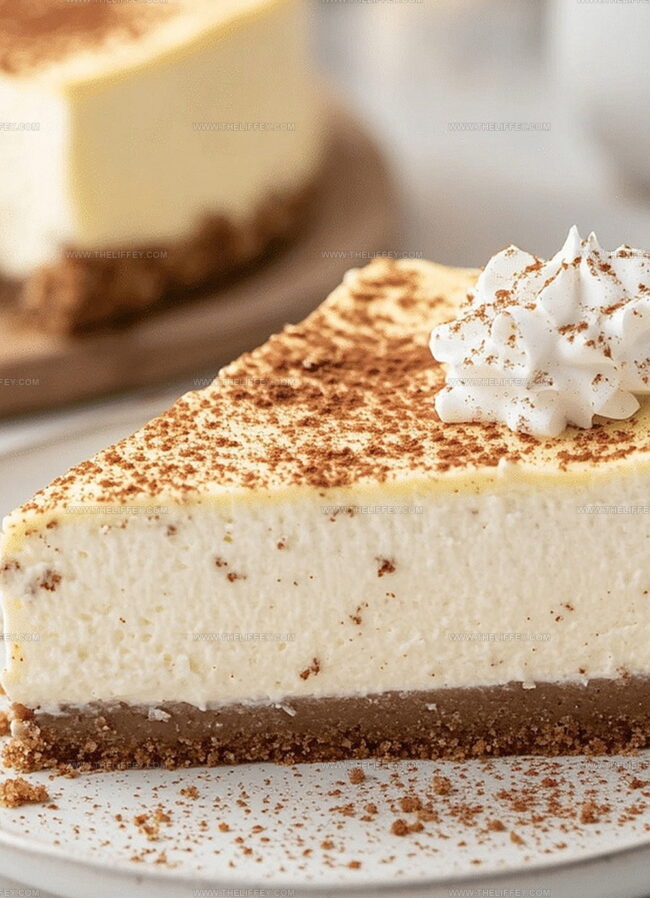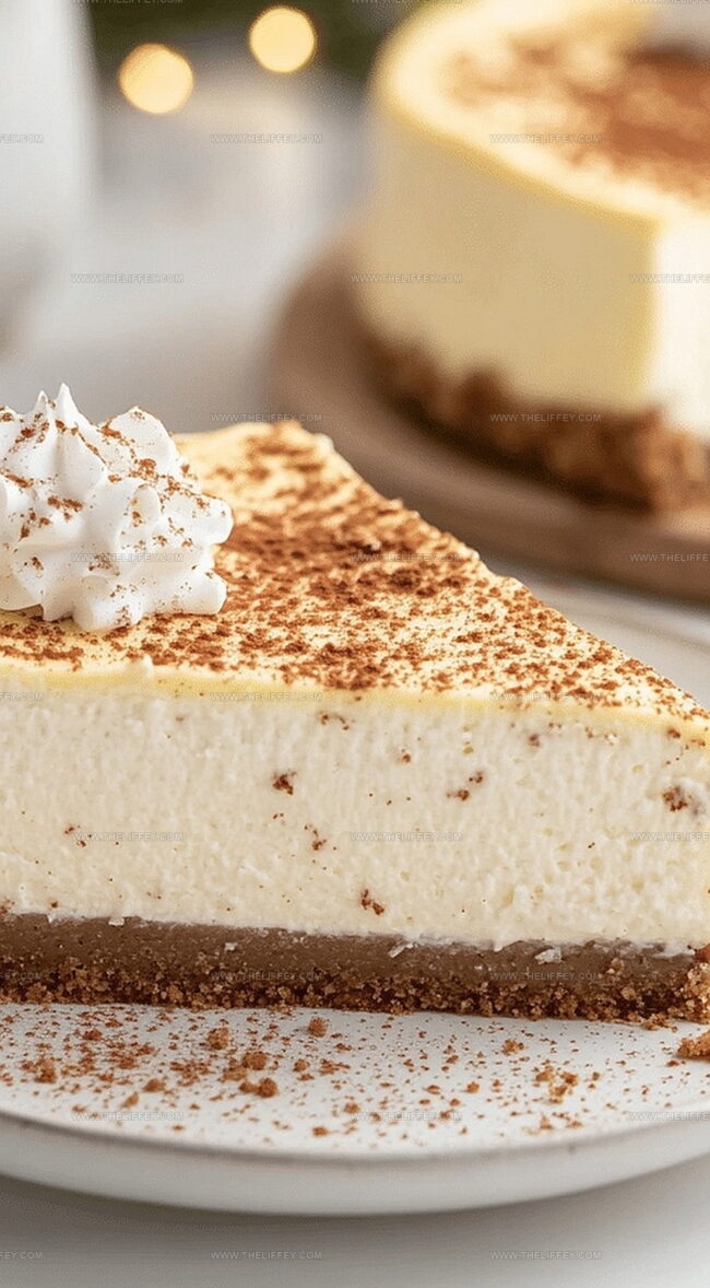 Rich and creamy eggnog cheesecake delivers holiday nostalgia with classic festive flavors. Silky custard filling nestled in a graham cracker crust promises delightful seasonal indulgence you’ll savor.