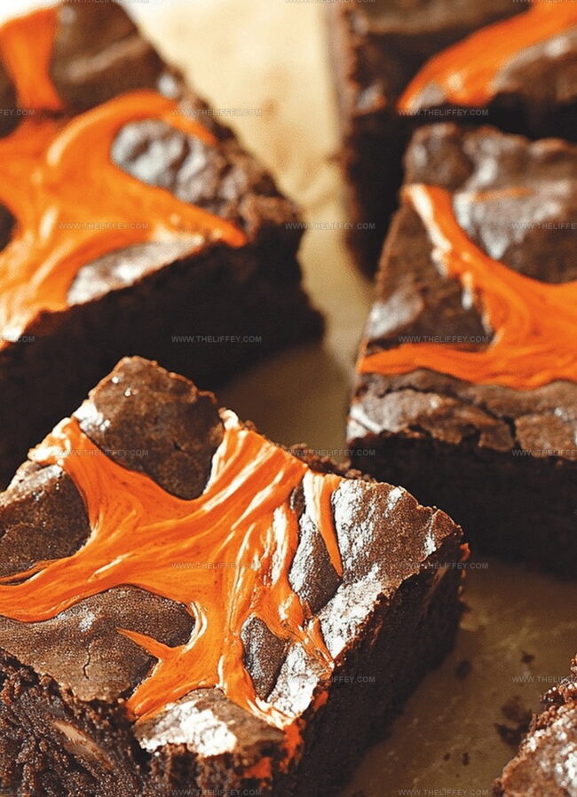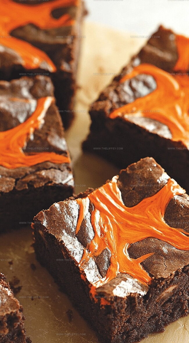 Spooky halloween swirl cream cheese brownies blend rich chocolate with tangy cream cheese for a festive dessert. Dark chocolate and orange-tinted cream cheese create a haunting marble effect perfect for seasonal gatherings.