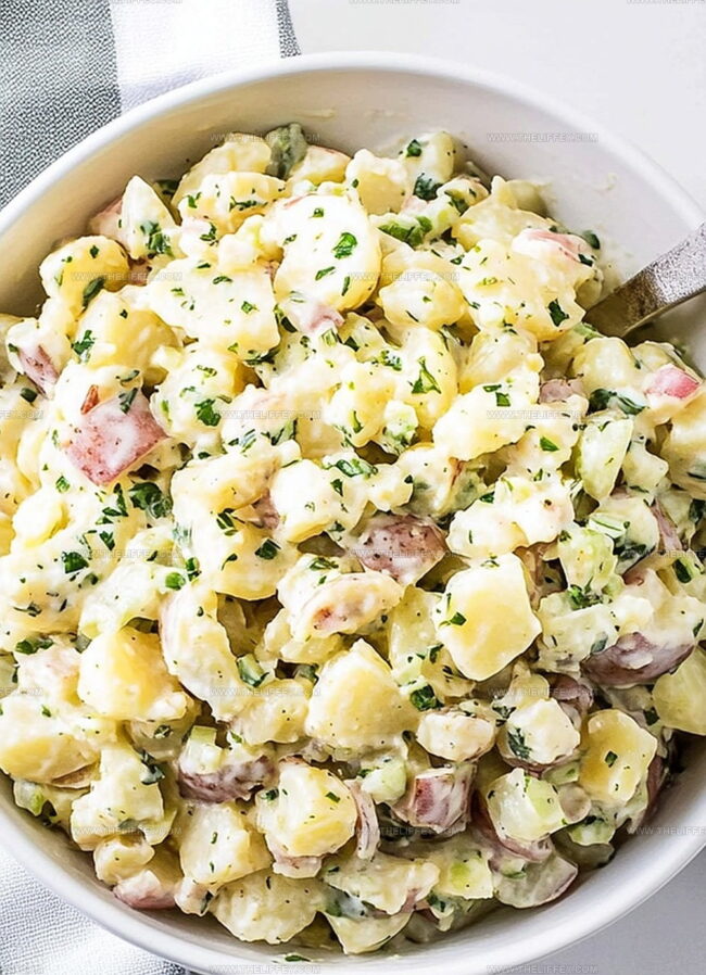 - Transfer the potato salad to a sealed container and refrigerate for minimum 1 hour to allow flavors to meld and develop.