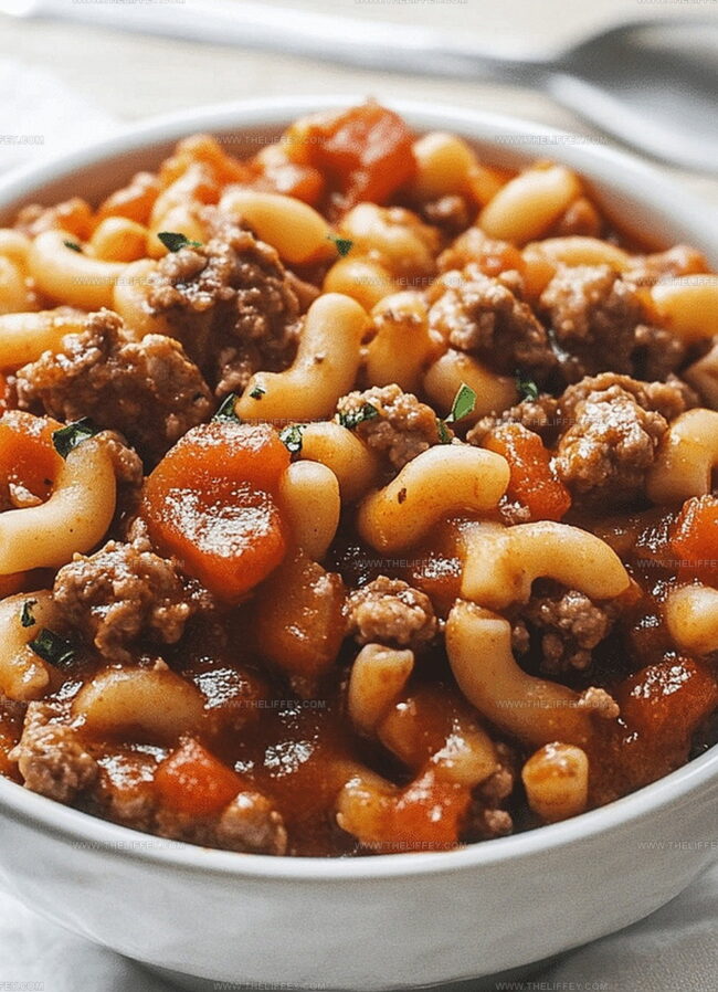 Classic American goulash blends hearty ground beef, tomatoes, and elbow macaroni into a comforting one-pot meal. Midwestern home cooks love this simple, satisfying dish that brings families together around the dinner table.