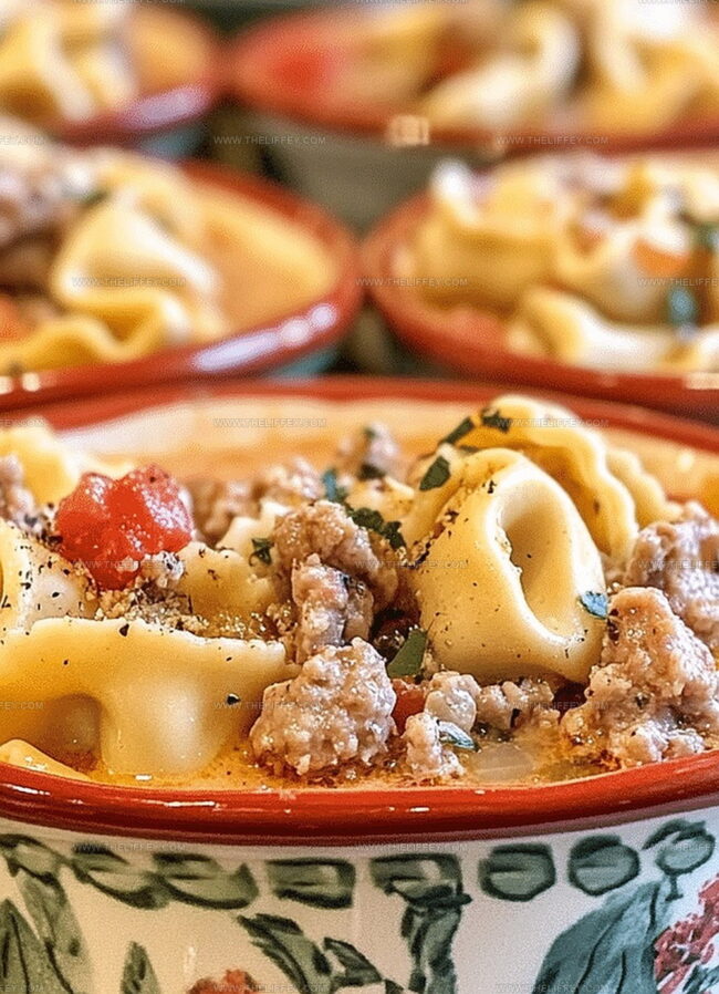 Savory Italian sausage mingles with tender cheese-filled pasta, creating a soul-satisfying meal.
