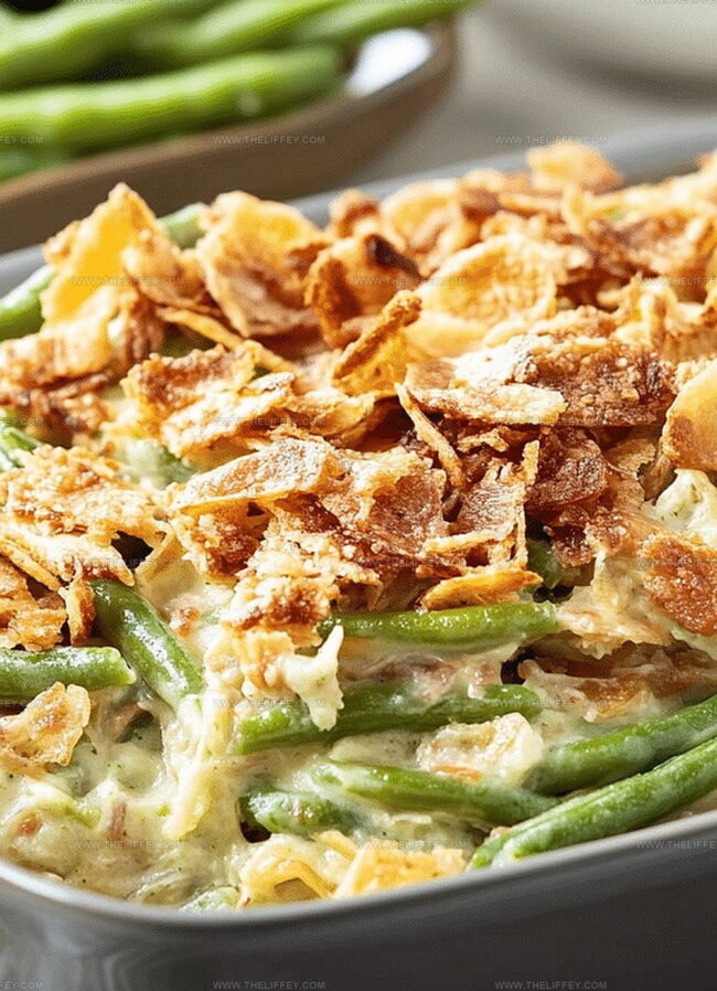 Crisp green beans nestle beneath a golden, crunchy topping that crackles with each bite.