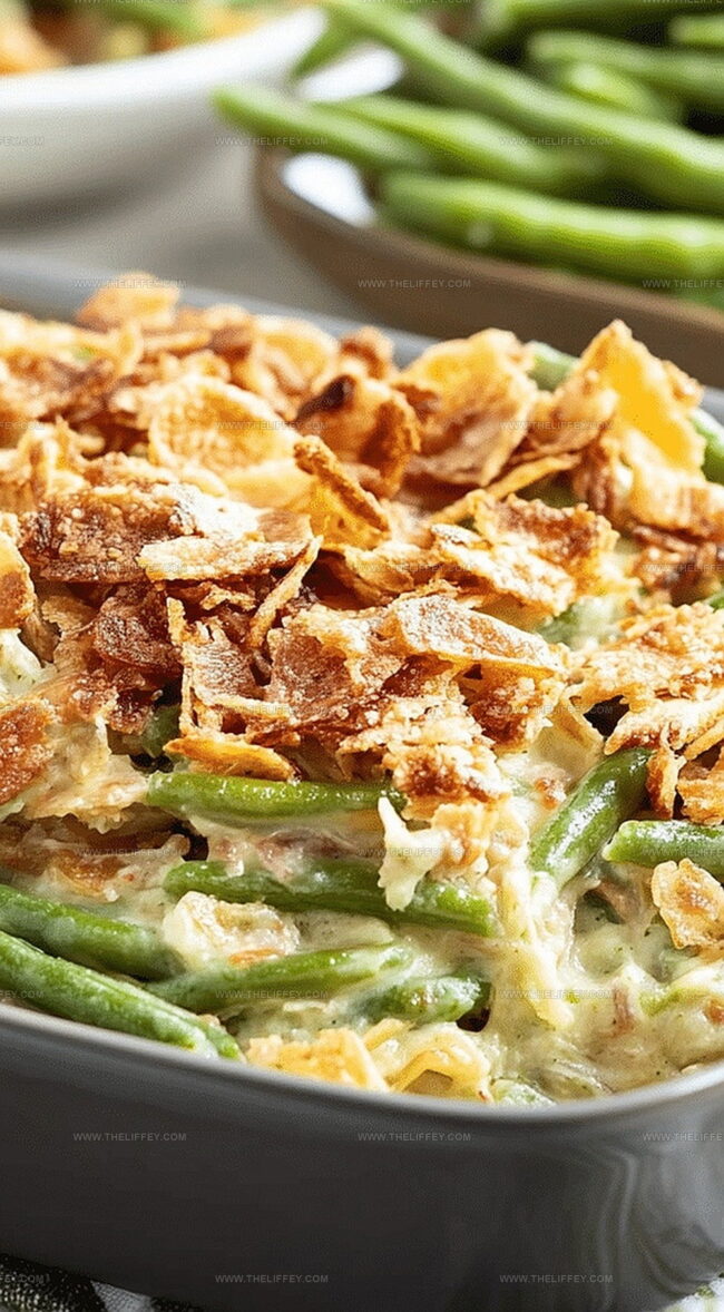 Green bean casserole with a crispy bacon twist promises pure comfort on your dinner plate.