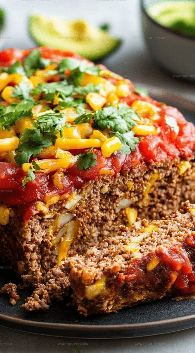 - Slice the meatloaf into hearty portions and serve hot, showcasing the vibrant Mexican-inspired flavors and melted cheese.