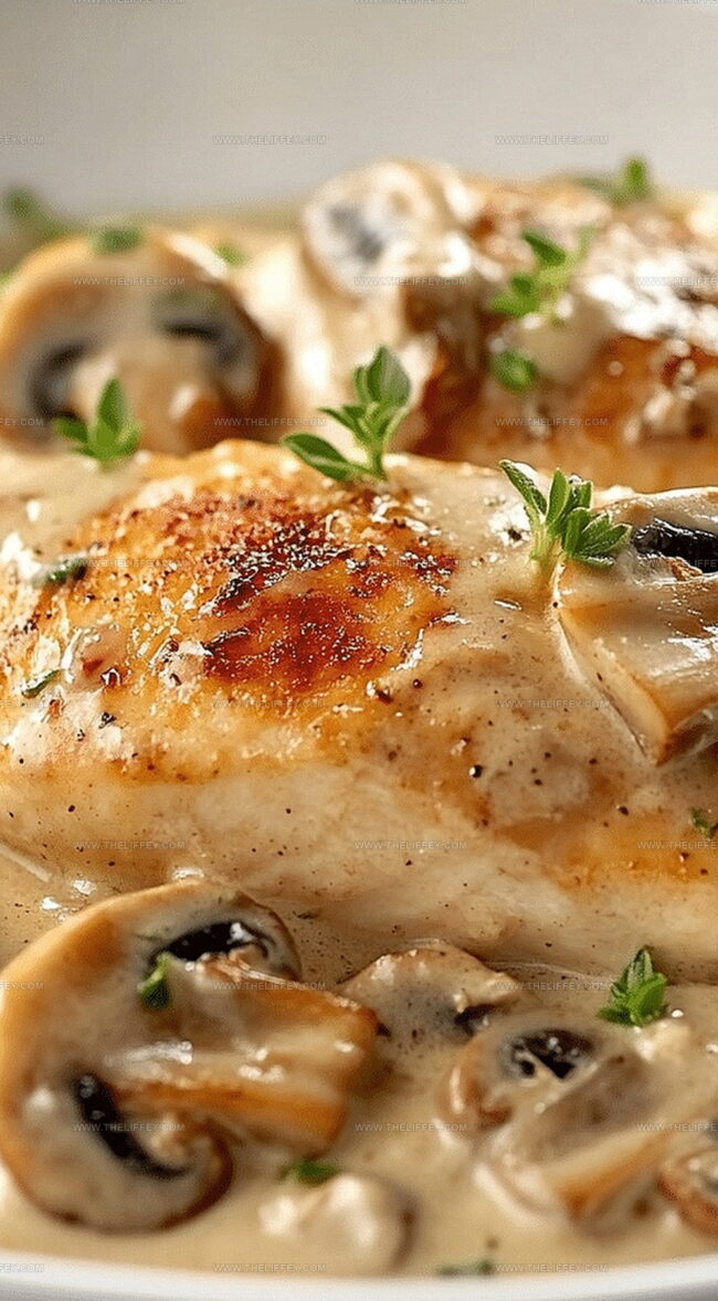 Earthy mushrooms and tender chicken meld together in a velvety sauce that whispers pure culinary magic.