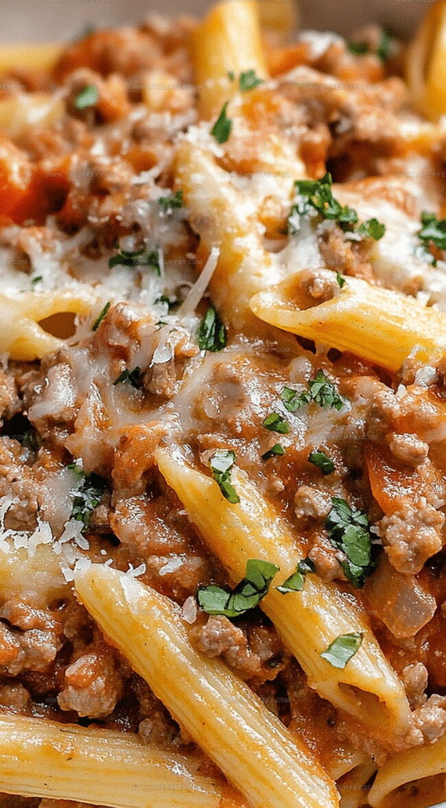 - Gently fold cooked pasta into the meat mixture, ensuring each pasta piece is thoroughly coated with the rich sauce.