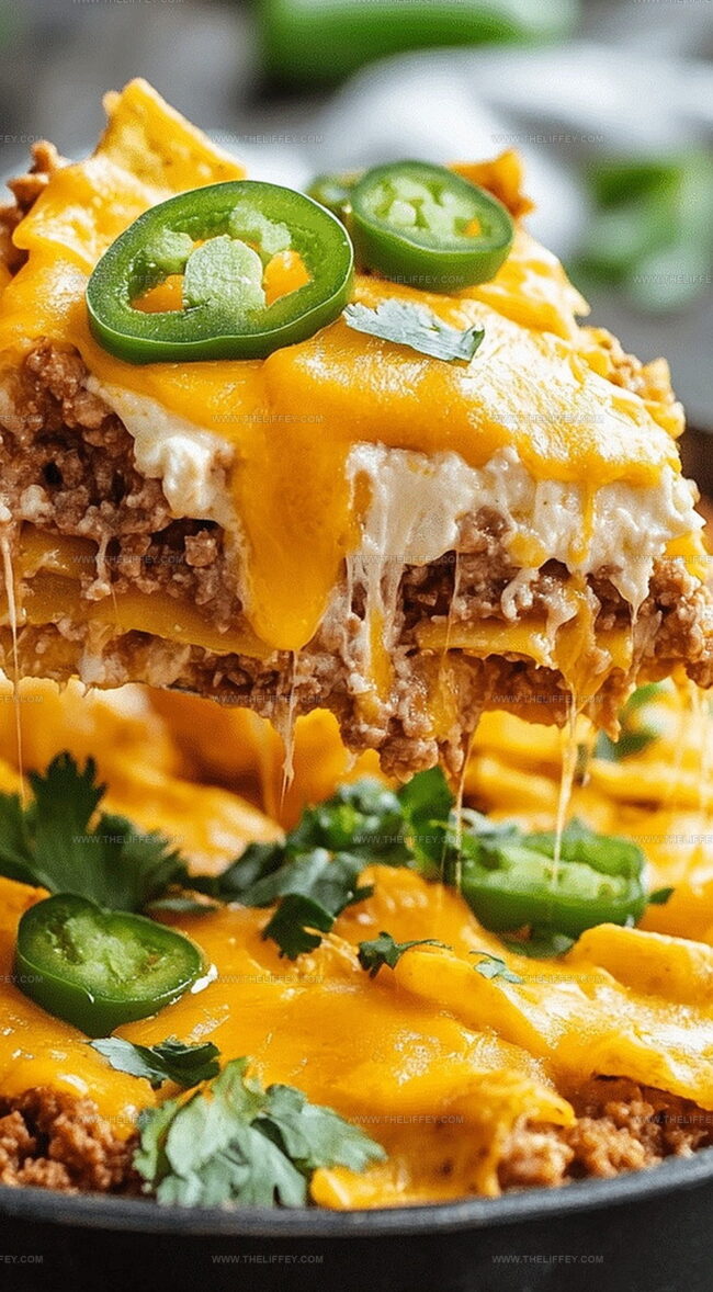 Layers of cheese, tortillas, and seasoned meat come together in a mouthwatering dish.