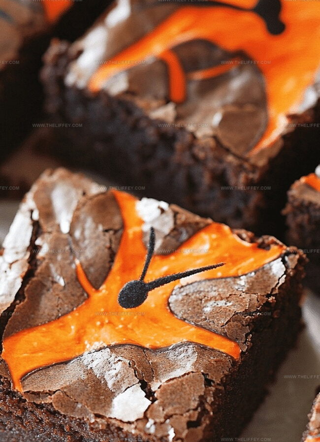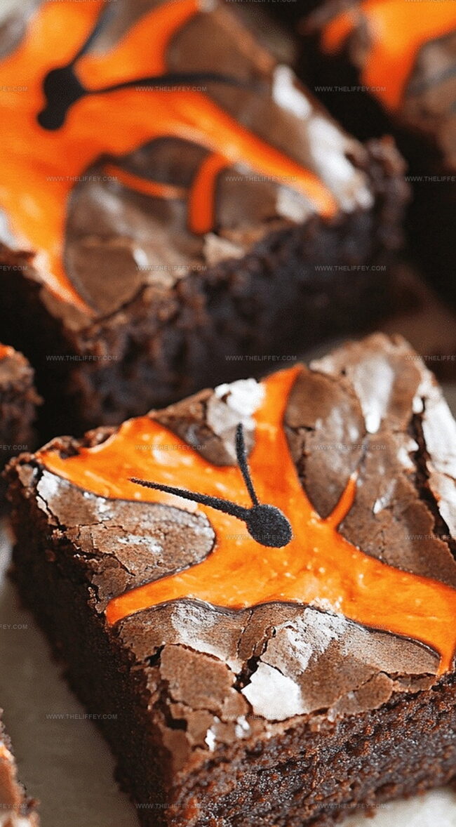 Ghoulish Halloween swirl cream cheese brownies blend rich chocolate with spooky cream cheese patterns. Dark chocolate base mingles with tangy cream cheese, creating a festive dessert perfect for seasonal celebrations.