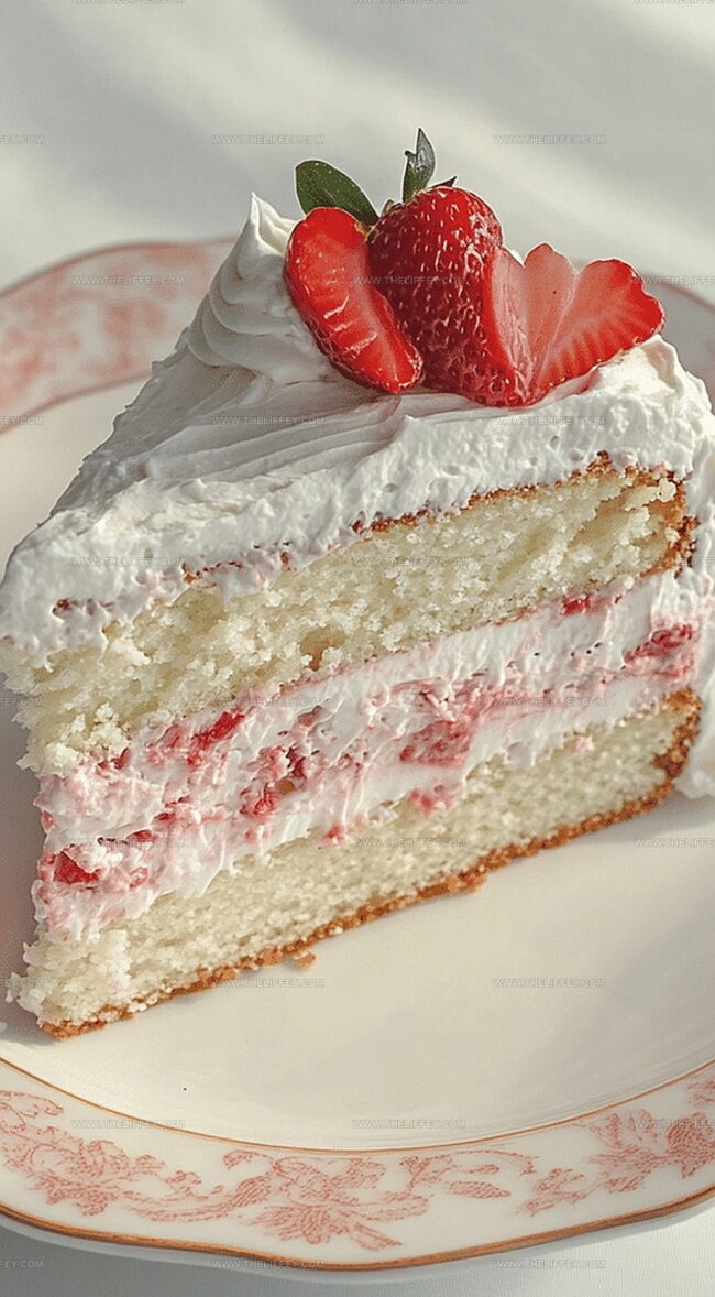 - Enhance the cake’s presentation by adorning with fresh strawberries and delicate white chocolate shavings, creating an elegant and appetizing finish.