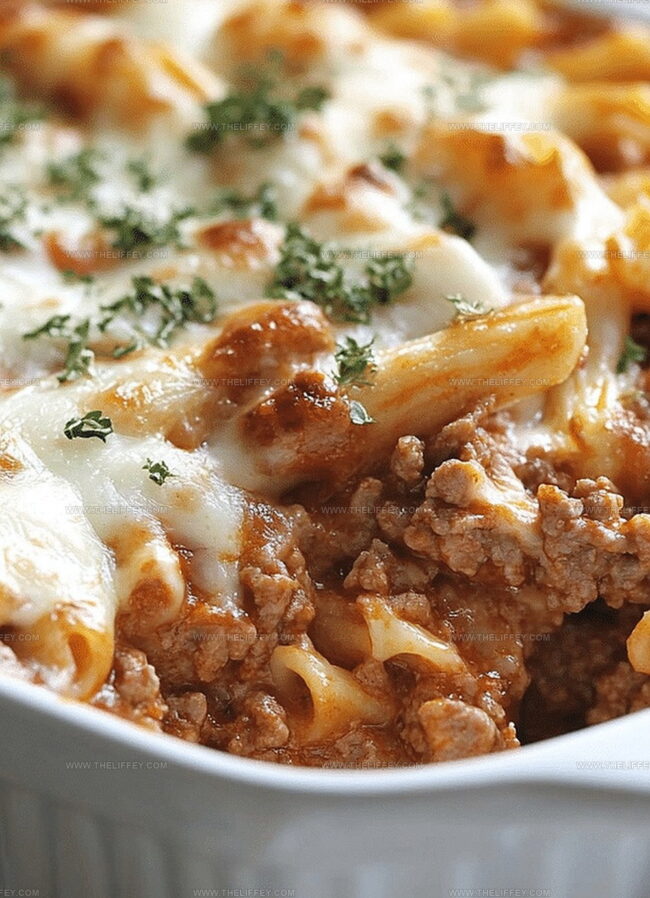 Cheese melts beautifully across tender meat and soft noodles, creating a mouthwatering blend of textures.