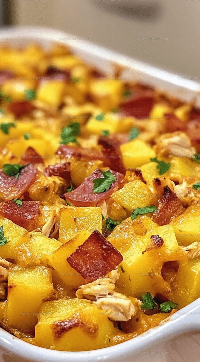 Hearty loaded chicken and potato casserole promises a comforting meal that feels like a warm hug on a chilly evening.